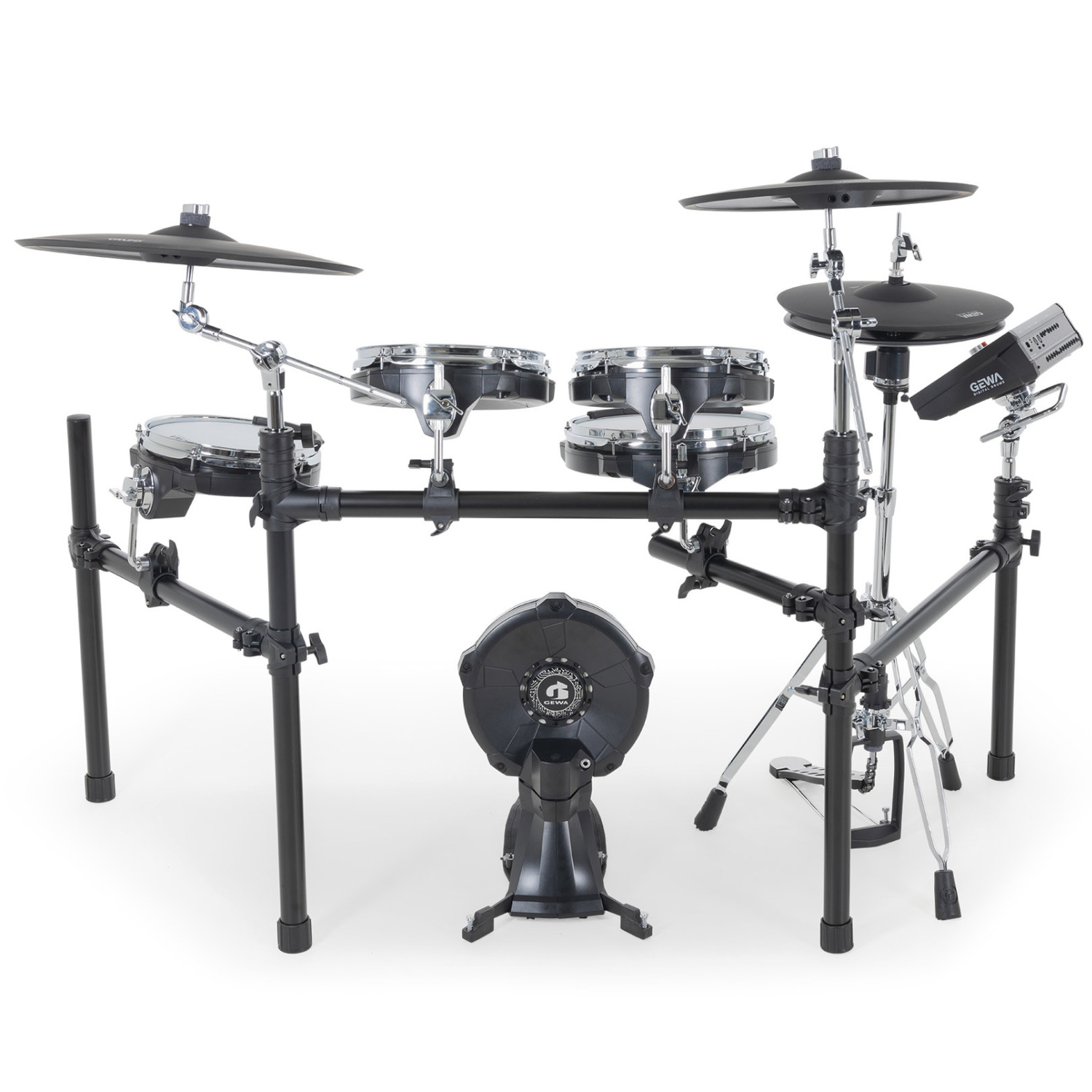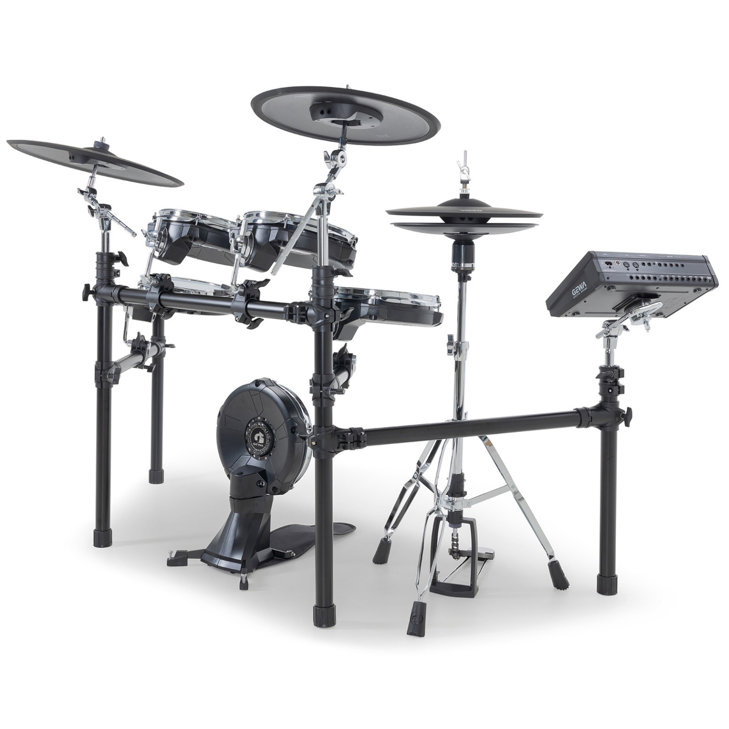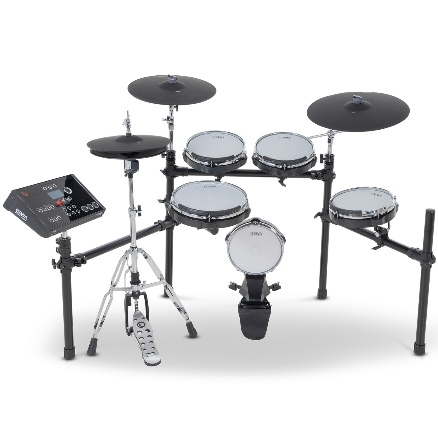 Yhdessä korkealaatuisten erikoiskalvojen ja erityisesti kehitetyn GEWA e-Hardware telineistön kanssa ne tarjoavat soittotuntuman, joka ei millään tavalla häviä akustiselle rumpusetille.
