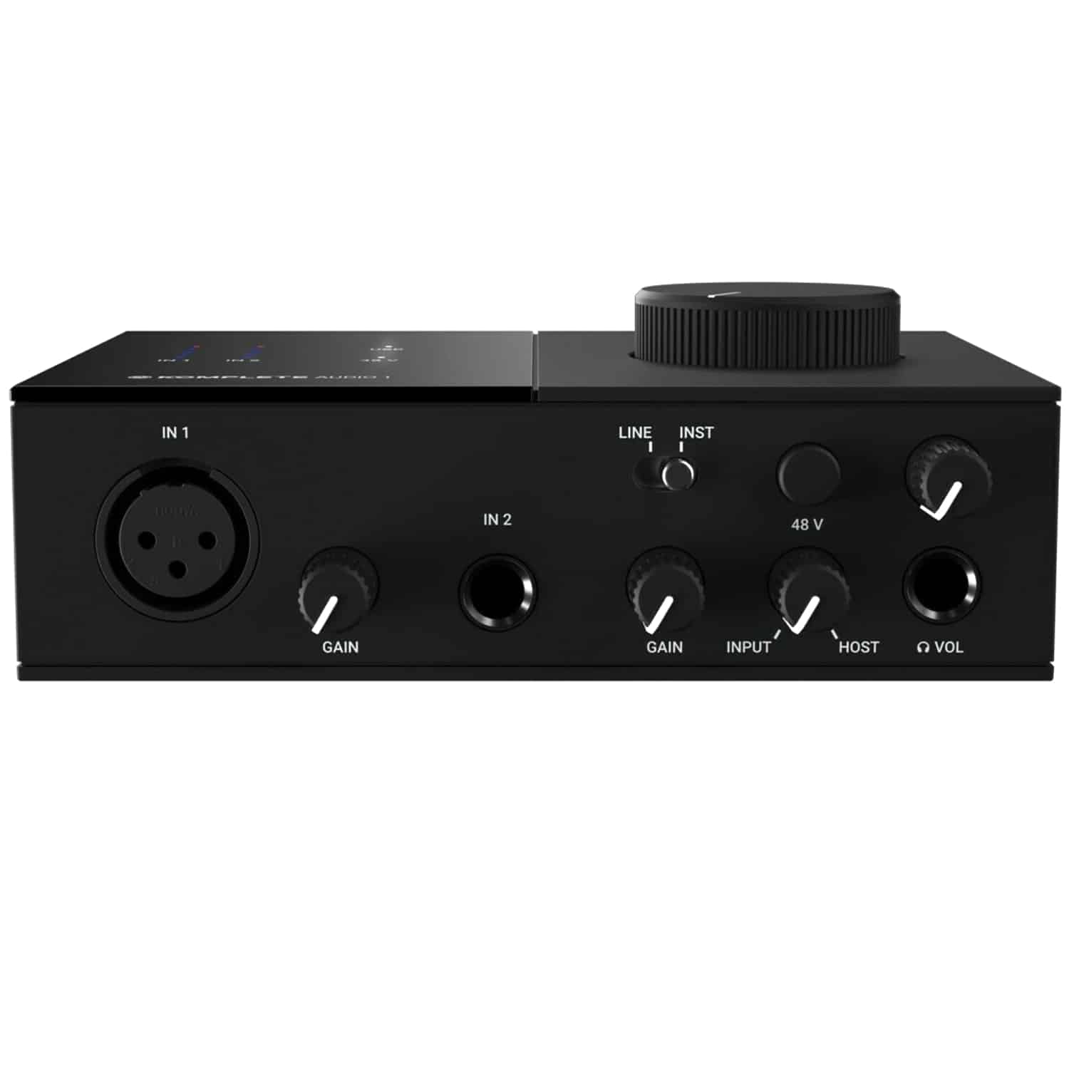 - Liitännät: Stereo RCA-lähtö, kuulokelähtö, instrumentti/linjatulo (gain-säätö), XLR-mikrofonitulo (48V phantom)